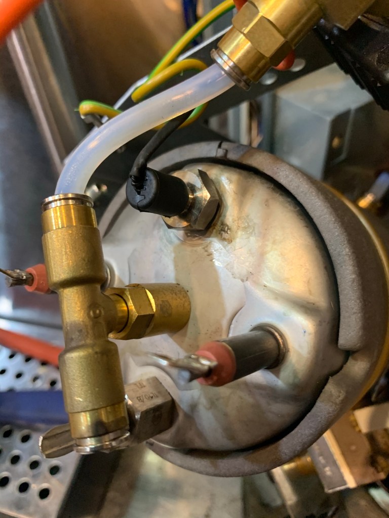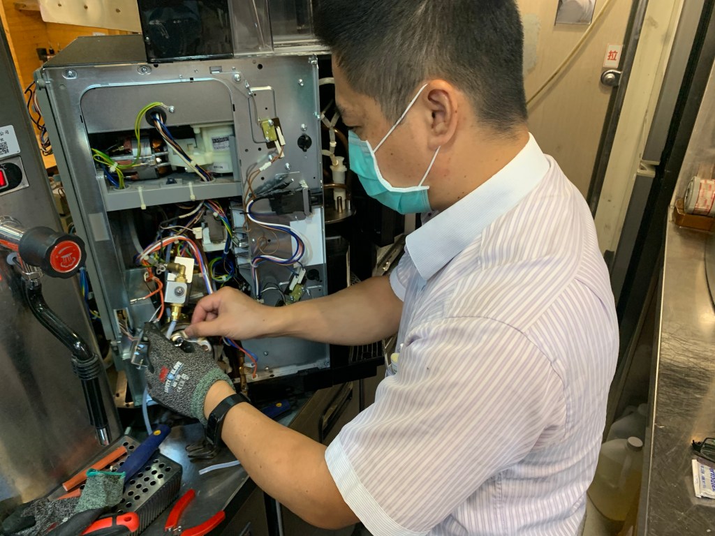 與工程師討論後,蒸汽鍋爐有一條環保墊圈老化導致鍋爐漏蒸汽