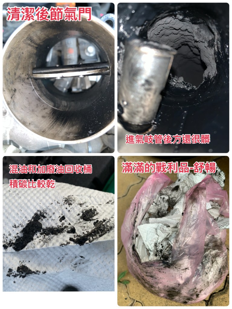 應該還保有工程師的思維,知道其原理後,幾顆螺絲,便把節氣門拆下,進行清潔,雖然不是專業清潔,但看到將積碳泥清潔乾淨,就有滿滿的舒暢感。